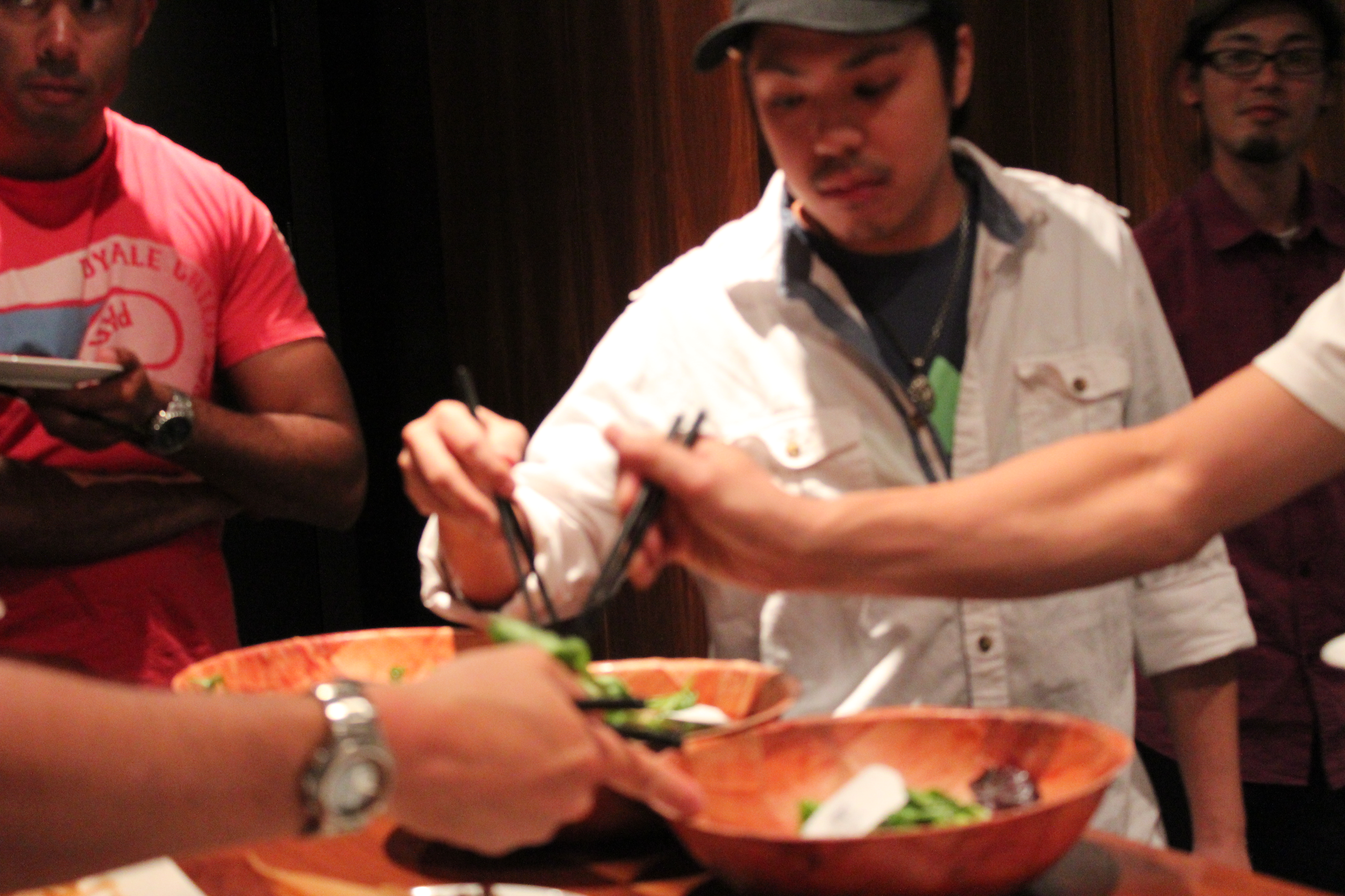 Now that we have four locations of Hapa Izakaya, and a fifth opening in Toronto, we are moving towards further standardizing our menu. We started with a few pages that were consistent at all locations and then each location would have its own “fresh” section of specials that they developed independently. Some specials became so popular that we moved them to the “ground” menu so that we could offer them at all locations. But as our audience grows wider we are moving towards more standardization. Which also means reviewing each location’s rendering of ground menu items and deciding which is the best and should become standard for each location. This was not an easy meeting. I was prepared to come, take pictures with my groovy new camera and external flash, and maybe taste a few things, but I was not prepared to preside over something like a Japanese version of a Pillsbury Bake-Off. I adore our staff and the last thing I would want is to cause hurt feelings! Creative people, they are so sensitive! But fortunately our kitchen guys are pretty practical too.